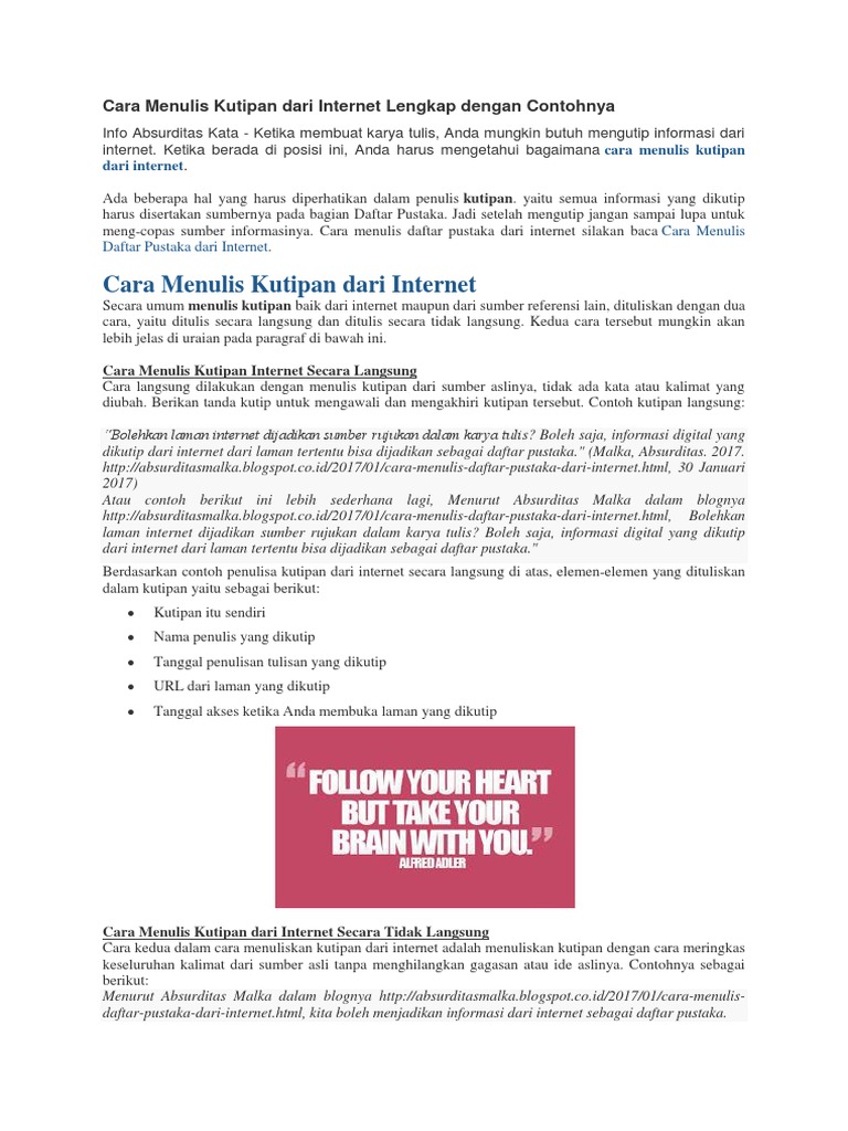 Cara Menulis Kutipan Dari Internet Lengkap Dengan Contohnya Pdf